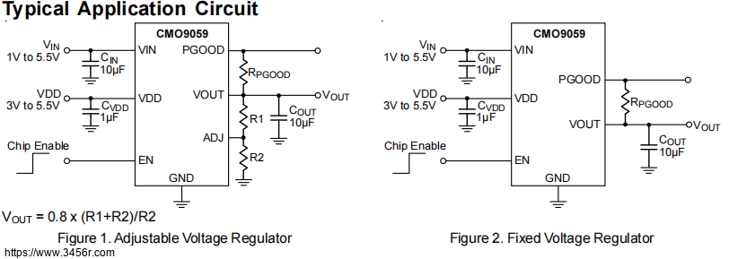 CMO9059 提供出色的变化调节在线、负载和温度。 CMO9059 提供了一个电源指示 VO 的电压电平是否达到的良好信号其额定值的 90%。